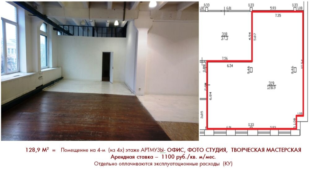 Помещение 128,9 М2 = на 4-м (из 4х) этаже АРТМУЗЫ