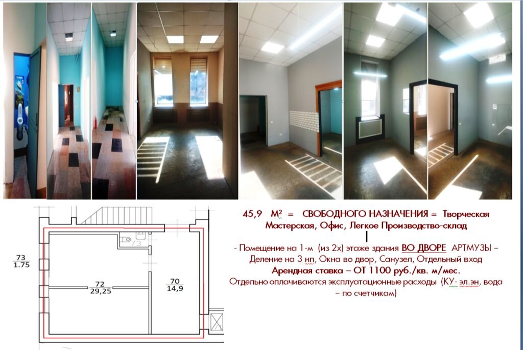 АРТМУЗА » Долгосрочная аренда площадок » Аренда помещения 45,9 м2 - 1 этаж/двор - под творческую мастерскую, производство, офис