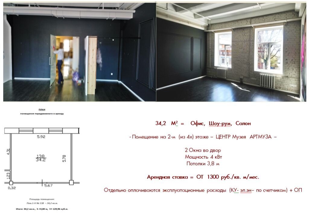 АРТМУЗА » Долгосрочная аренда площадок » Аренда помещения 34,2 м2 - 2 этаж - только - под Шоу-рум, Офис, Салон